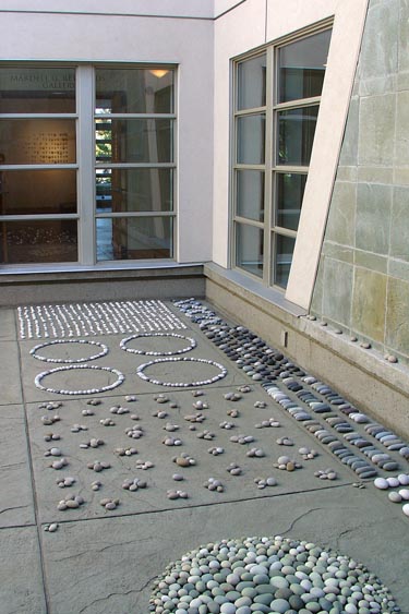 Release in the Rotary Courtyard ceramic & stone The Reynold's Gallery can be seen through the window |