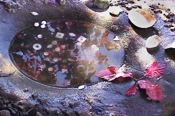 that was brought to the beach like an ornamental basket or a flashy dress, or maybe they came from far away, washed up by the sea – but who would ever think two crazy Canadian tourists came here and left them on purpose, took pictures of them and spent the afternoon contemplating the life of these shells? - BB& RM It felt wonderful to place them and to think someone will find them. This beach is regularly beach-combed, and islanders decorate their yards with their findings. The first day I arrived here I met a family singing out their discoveries on the beach – Lavender glass! Coal! Cobalt glass! I imagine similar children finding the shapes and treasuring them. - Anonymous I waited a long time to scatter these pieces of shell. I am currently living a long way from the ocean and did not want to scatter them on the shores of Lake Ontario - it didn’t feel right. So I sent them to my sister and told her where to take them. I wanted to set them free somewhere that held some significance for me. I have spent many hours on this beach and made many important decisions while running my hands through the pebbles on the shore. My sister said it was raining and quiet -- just the way I had pictured it in my head. - Michelle It was cool, and the wind was blowing, slightly damp. I felt a lot of things as the shells were spread. I felt I was leaving treasures for others to find. I felt how connected I am to this place and the seasons… The whole action seemed like sowing seeds for something new, and I think that is why the weather was so important, the feeling of fall coming and the rain and grey that was still familiar, but still brought something new and fresh, a shift in my life. – Cameron |