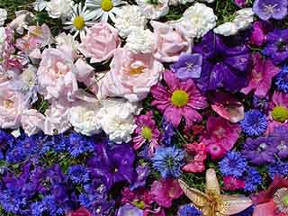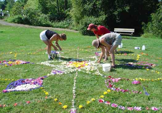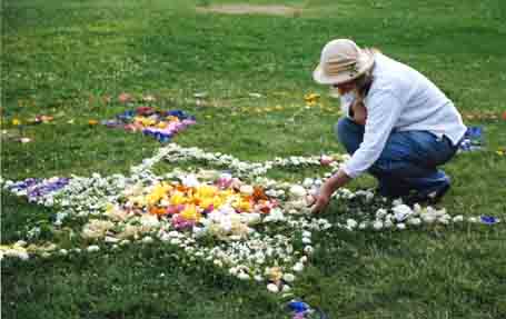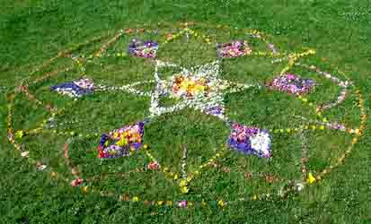 To find out more about flower celebrations, flower carpets and flower circles around the world, you might like to try a search for the terms Rangoli, Infiorata, Alfombres de Flores and Well Dressing. |